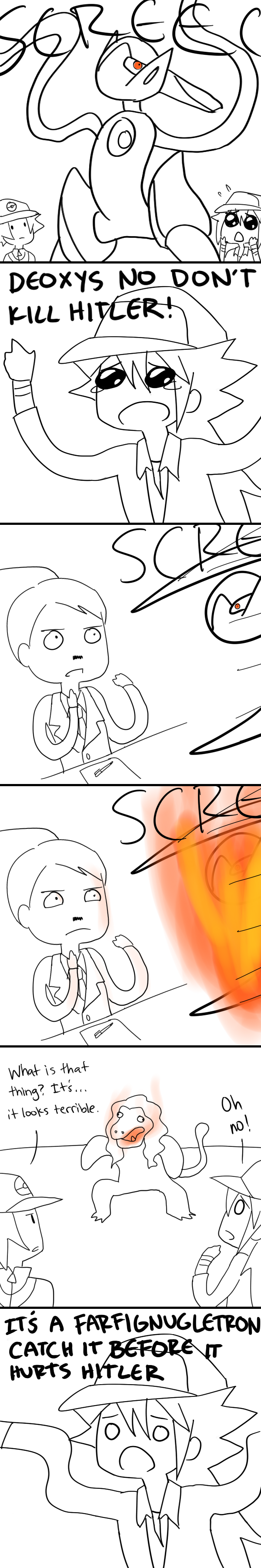 Lol, Hitler looked a lot more worried before Deoxys bursted into flames…
