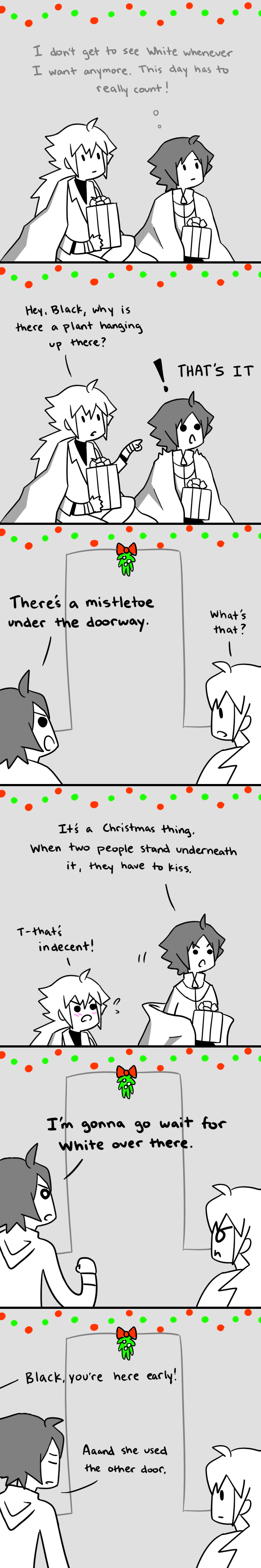 Is it bad that I want to see N and Black under that mistletoe? ^______^”