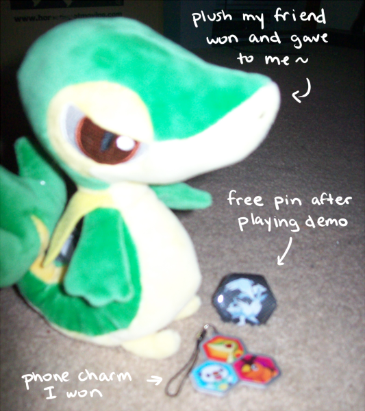 I won the phone charm, which I’m okay with. Then my friend gave me the Snivy he won and I hnnng’d all over the place. And that was pretty much it, I think. I would’ve bought an Audino doll, but they weren’t selling any. Whyyy are they so expensive online? I need one…