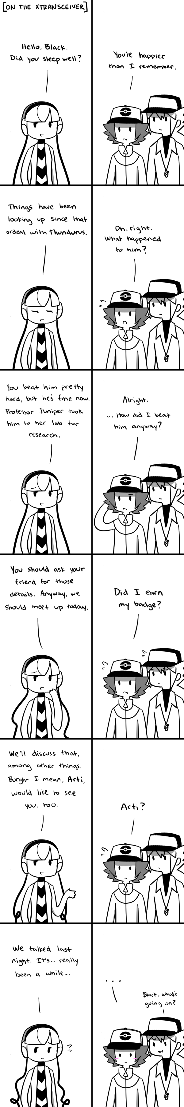 lol so cute Black still has a mancrush on Arti, Elesa might still have feelings for him, and N’s getting all jelly ^^