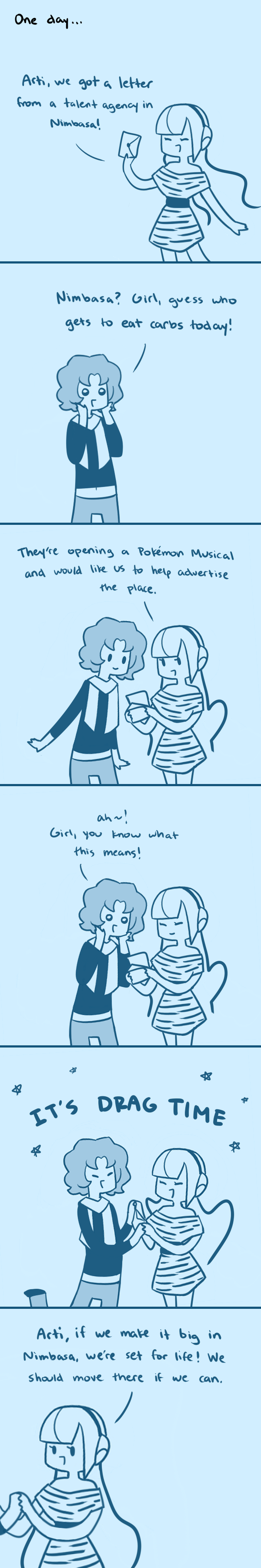 I think I ship them MORE now that Arti’s been almost-established as really gay. (And sassy.) Possibly because I like fab Elesa more than tsun Elesa. They’re fabulous, both of them.