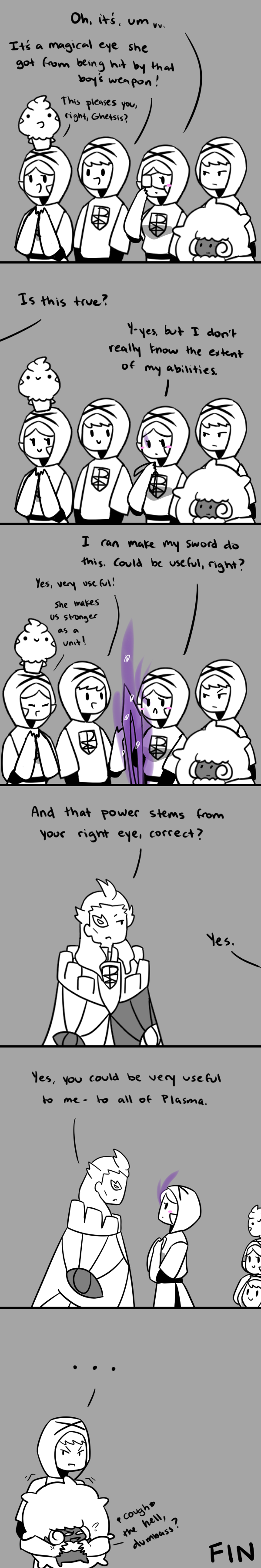 Either going to be some eye-scream horror in the near future, or she’s about to take over team plasma herself…