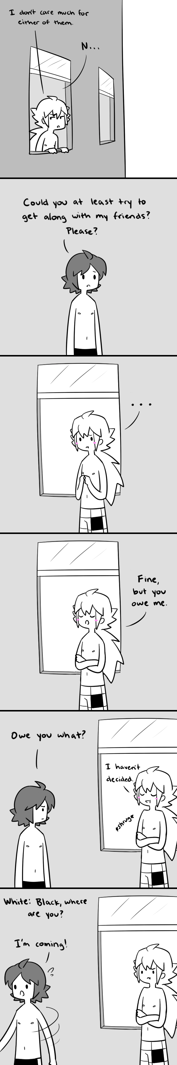 11. N, stop being jealous. White already thinks you and Black are gay for each other anyway. XD