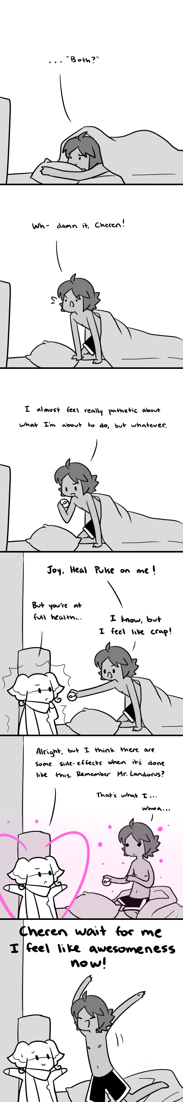 Hahaha, everyone should try a Heal Pulse some time I guess. Hmmm… I wonder what would happen if it was used on Cheren?