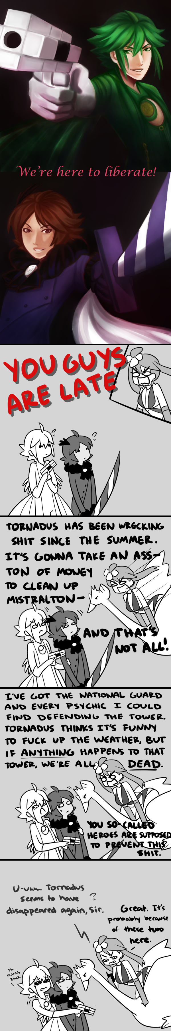 It’s not their fault that Mistralton didn’t try to get word out on the situation at all during the summer. I blame Skyla and the news reporters. From Black and N’s point of view, they probably just made it, considering that no news came out until very recently.