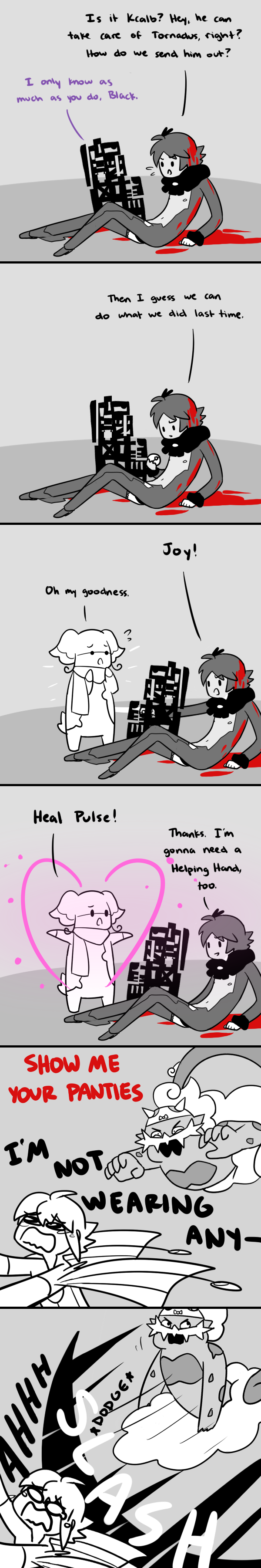 Considering Black was just getting severely injured, I think he was thinking it was a hopeless fight if something didn’t change. Maybe Missingno.’s glitching is limiting his potential in fighting without Kcalb appearing.