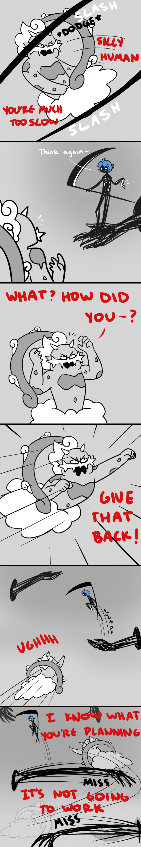 Agggg this comic is getting to me my friend asked me to make a new character and the first thing that popped into my mind was edalb which is blade backwards (blade is my first character) so I ended up dropping to the ground screaming “NOOOOOOOOOOOOO! get! it! out! of! my! head!