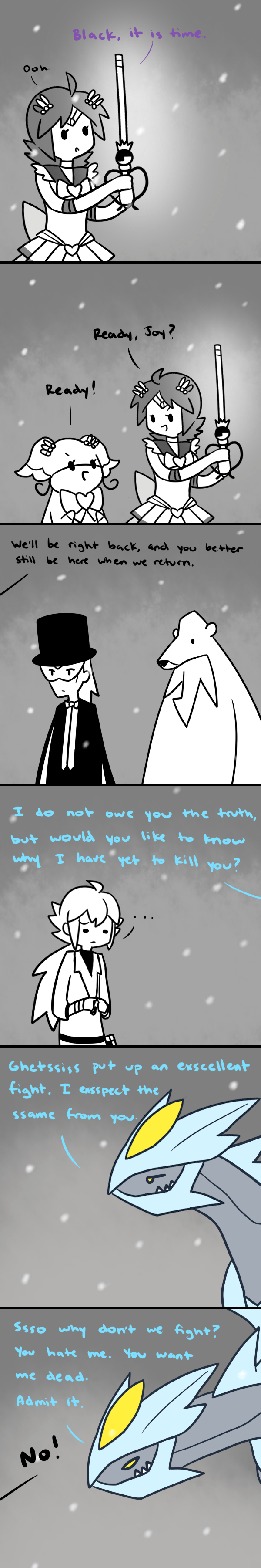 N should do it. And then rip chunks of him out with his teeth and eat it raw. Yum yum. And then have a “I’m a monster” moment that I only now realize I am oh so fond of. Mmm, yes~