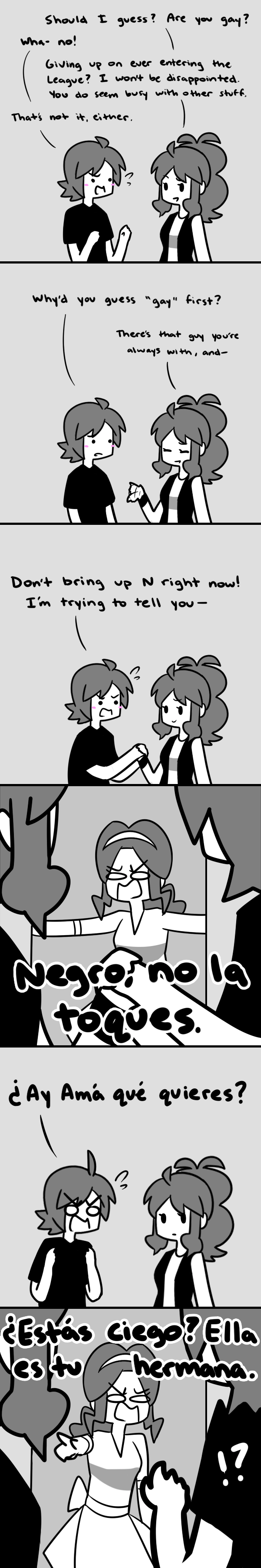I’m loving the Spanish! I don’t study the language, but I could understand “Negro” and “Elle es tu hermana”. It was all I needed.