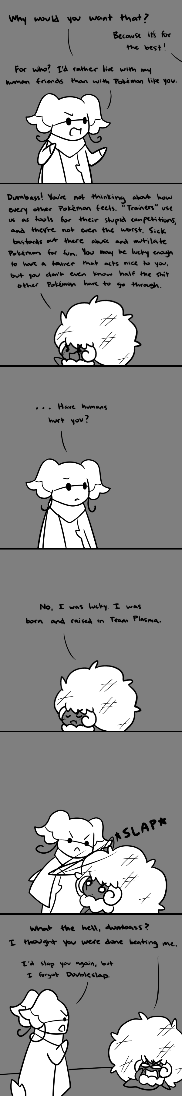 YESSSSSSSSSS Plasma-ideology debate between Pokémon. A!Black, I love you. (+ a forgetting-attacks joke.)