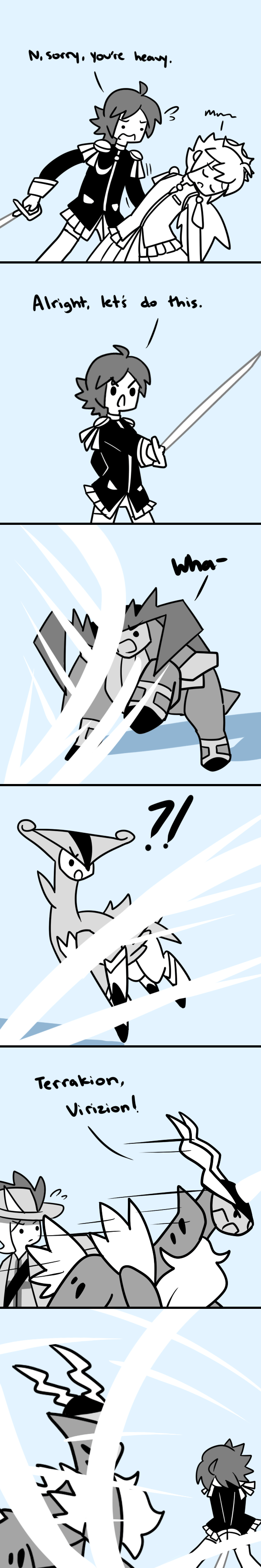 I imagine Cobalion being all like “blearghghgherflerghgle” in the last panel for some reason. Lol
