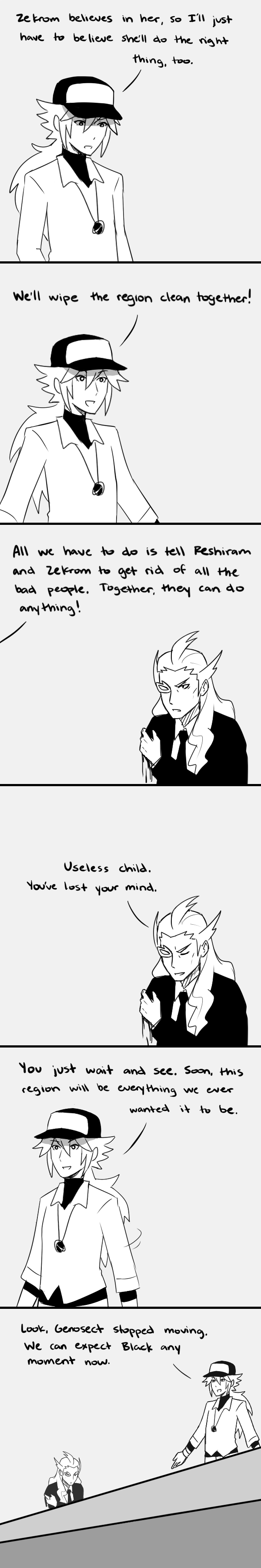 So let me get this straight, form that one confusing page: Kcalb finished off Hitler, White tore off Ghetsis’ arm and then she become that… black… person. What did defeat Hydreygon?
