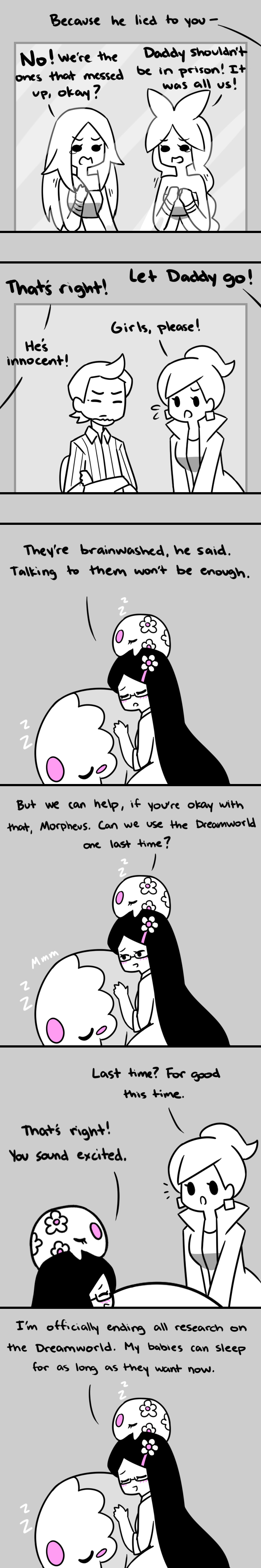 I don’t think you are supposed to fix brainwashing with more brainwashing honestly, it’s not really a good way to set them free…oh well it saves so much time and cuts back on so much story so I guess it’s fine. It saddens me that there will be no more research on the dream world even more so though!