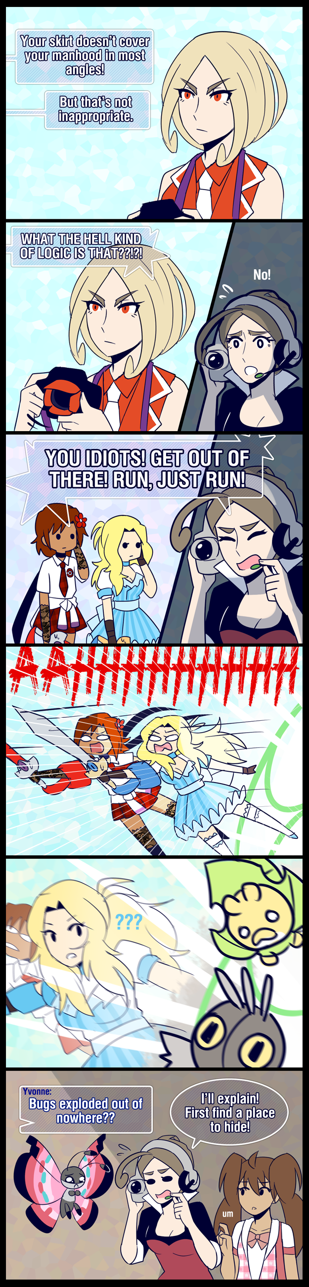 Love this update, love Xavier and Yvonne’s outfits, love the exploding bugs, love love LOVE it