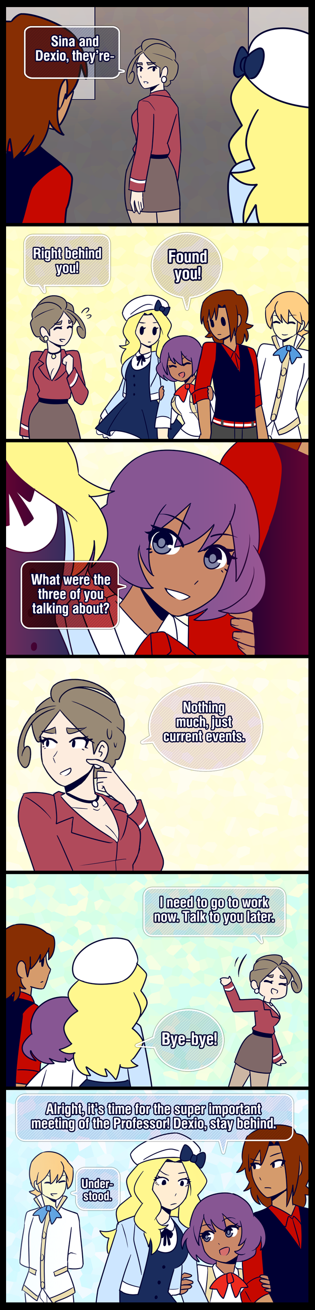 Wait, was Sina always this short, or is she literally hanging off their arms? Also Dexio is a cutie but needs to figure out how to go through life without being bossed around.