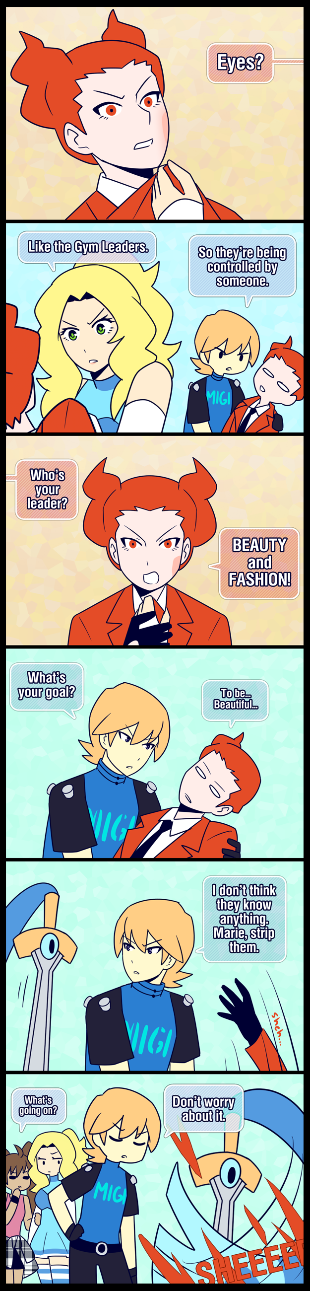It almost looks like they are just wearing colored eye contacts, sort of curious why he wants to strip them, is it the tacky clothes that controls the person? At least they got what was coming to them for bullying shauna.