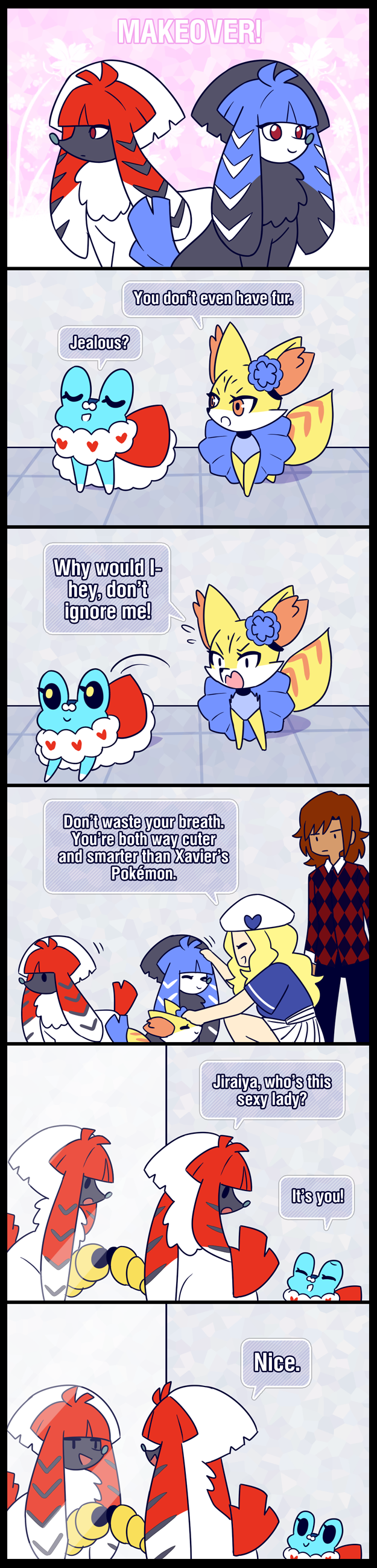I rarely draw animals, so this really upped the difficulty of this comic for me, but I really like furfrou…
