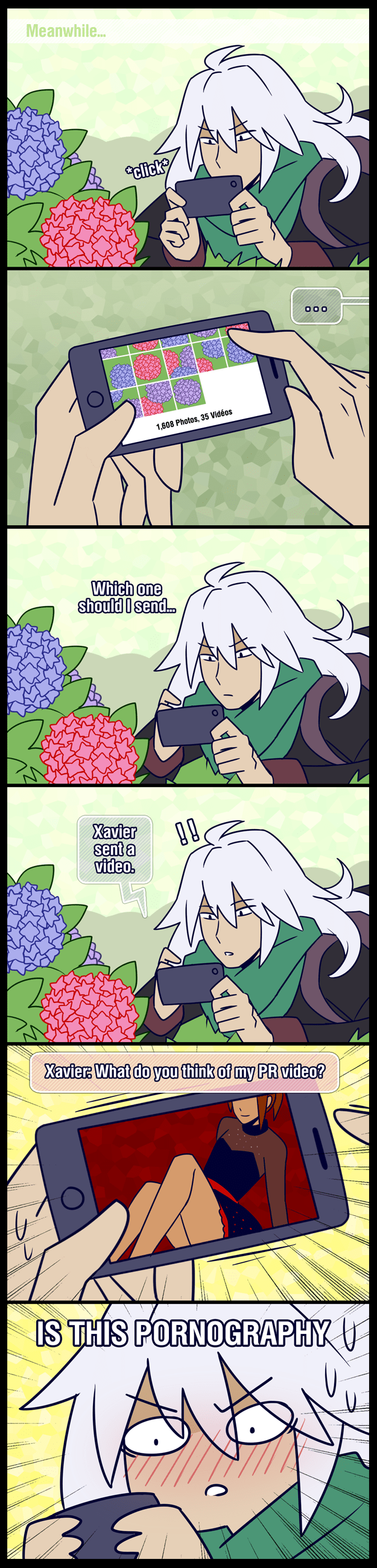 AZ is too pure for this. I can’t wait for him to come be Xavi’s knight in shining armor at least once. He’d be such a pretty knight, all silver hair and pure heart and fear of porn.